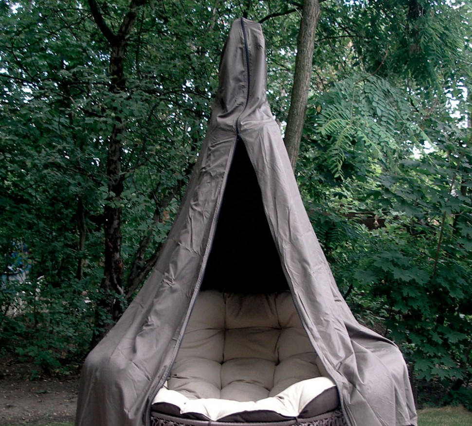Он не только защищает кресло от непогоды, но имеет еще и массу других полезных функций, можно оставить закрытое чехлом кресло на ночь. Подвесное кресло, укрытое чехлом, надежно защищено от попадания на него всевозможной пыли и грязи.