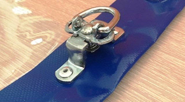 - Скоба ремень – предназначена для крепления мягких окон к конкретной поверхности. Скобы устанавливаются в материал основной конструкции. Сквозь люверсы окно насаживается на скобы. Ремешки, просунутые через скобы, предназначены для натяжения штор ПВХ.