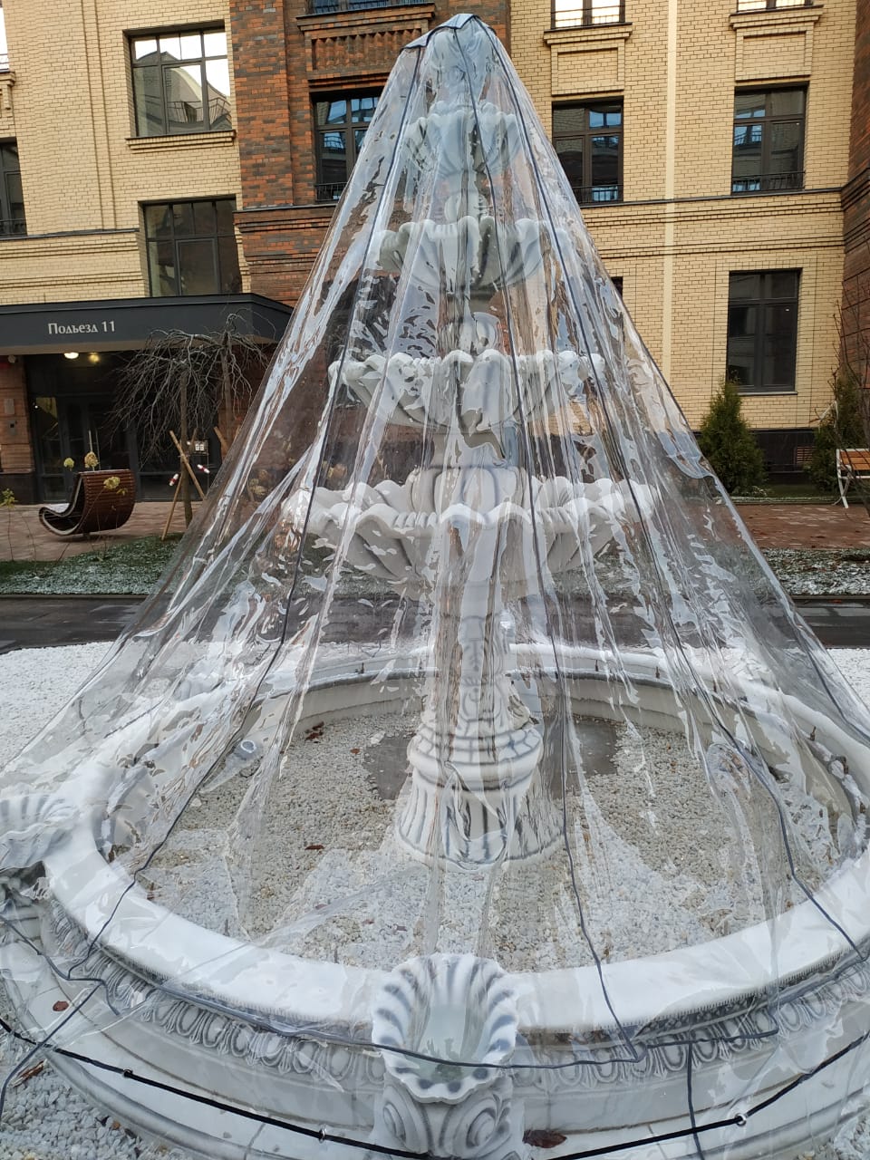 У нас можно купить тенты и чехлы для фонтанов, которые будут изготовлены под размеры и геометрию конкретного сооружения, то есть буду обеспечивать наивысший уровень защиты конструкции от атмосферных осадков (в том числе снега и наледи), перепадов температур, солнечных лучей, пыли, грязи, опадающей листвы и прочих внешних воздействий.