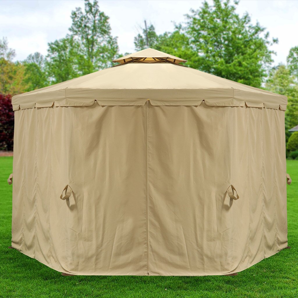 У нас вы можете приобрести комплект, предназначенный для шестиугольного шатра с двойной крышей Green Days. Данный комплект выполнен в сером цвете, произведён он в России. В комплекте находится крыша с вентиляцией, москитная сетка, а также шторы. Подойдёт данный комплект для шатра, размер которого составляет 2 х 2 х 2,8 м. Тент изготовлен из кровельной ткани полиэстер плотностью 93 г, стены изготовлены из ткани плотностью 93 г, а сетка из полиэфирной ткани с обычной обработкой.