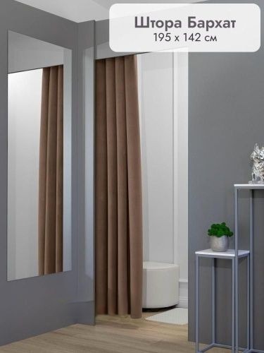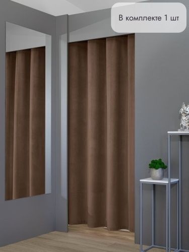 Штора для примерочной и дома на люверсах бархатная цвет коричневый, 1 шт