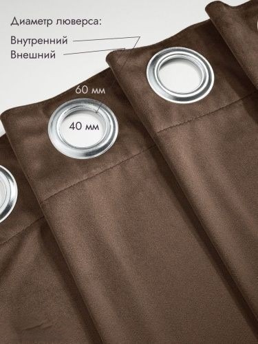 Купить Штора для примерочной и дома на люверсах бархатная цвет коричневый, 1 шт цена 2900 руб. в Москве и СПб с доставкой по России